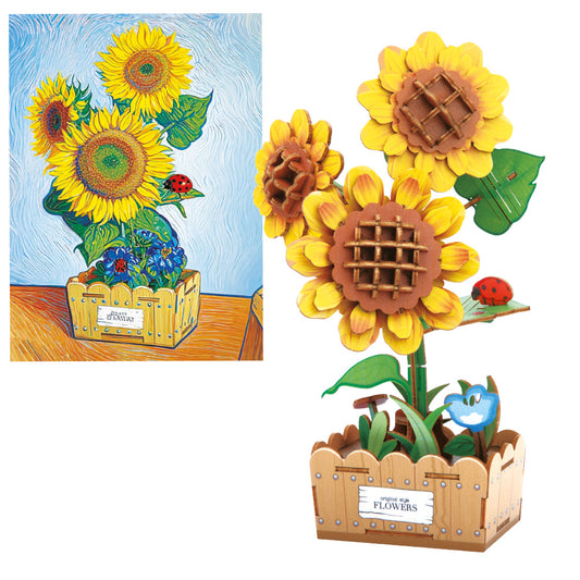 Drewniane puzzle 3D – Słoneczniki w skrzynce