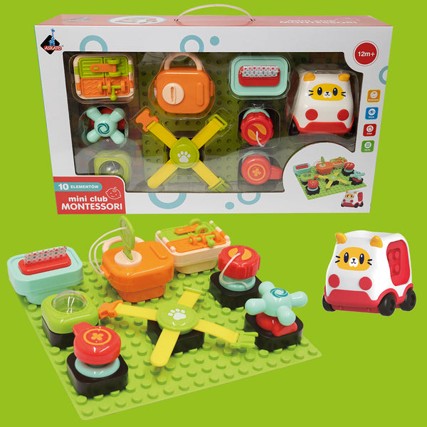 Duży zestaw Montessori to wyjątkowa zabawka edukacyjna, która rośnie razem z dzieckiem! Łączy w sobie ruch, dźwięk i dotyk, wspierając rozwój motoryki, logicznego myślenia i samodzielności. Zestaw zawiera autko z funkcjami sensorycznymi oraz tablicę montażową, na której można je przymocować i dowolnie komponować elementy.