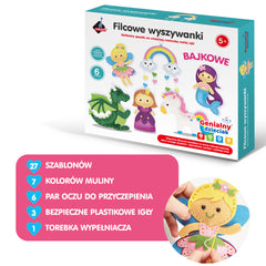 Filcowe wyszywanki – Baśnie to zestaw kreatywny, który rozwija cierpliwość, precyzję i wyobraźnię. Dziecko samodzielnie tworzy bajkowe ozdoby z filcu – każda z nich może stać się wyjątkową dekoracją plecaka lub pokoju.