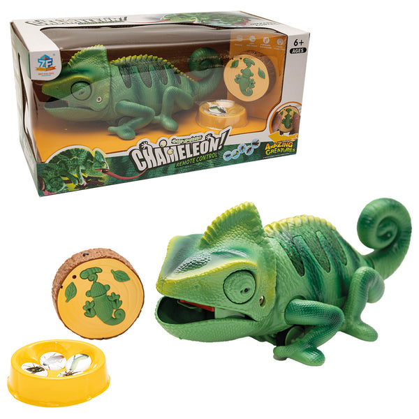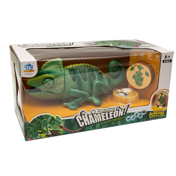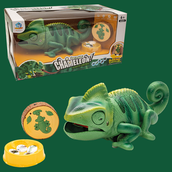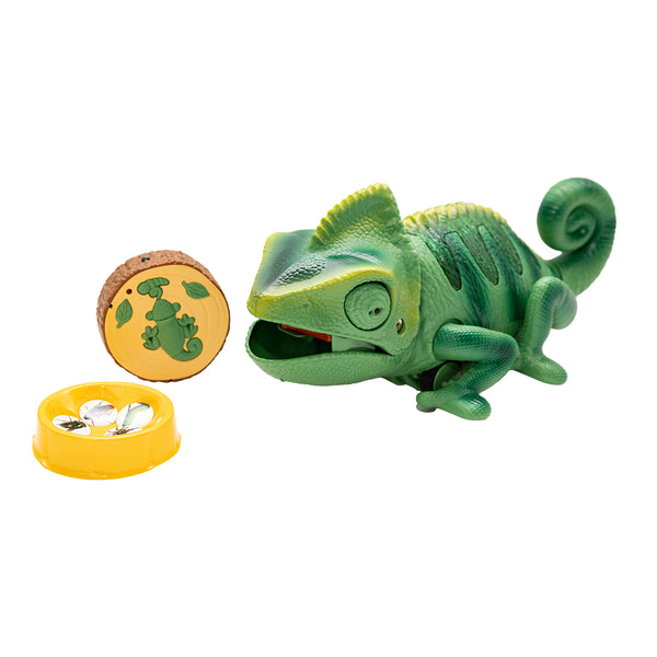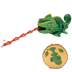 Sterowany pilotem kameleon porusza się płynnie i reaguje błyskawicznie na polecenia. Dziecko może kierować go we wszystkie strony, obracać i obserwować, jak wyciąga język, by złapać „owada”. Kameleon jak prawdziwy gad zmienia kolory!