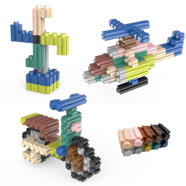 Zestaw w zupełnie nowej kolorystyce (aż 10 kolorów) inspiruje do tworzenia nieskończonej liczby konstrukcji – od prostych budowli po złożone projekty wymagające kreatywności i logicznego myślenia.