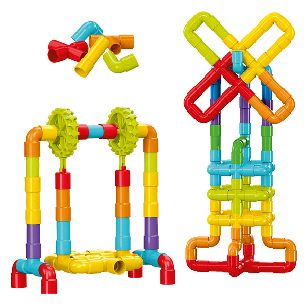 Klocki Małych Geniuszy - Złączki to zestaw 88 kolorowych elementów, który zachęca dziecko do samodzielnego tworzenia i eksperymentowania. Prosta forma klocków oraz możliwość swobodnego łączenia sprawiają, że dziecko szybko angażuje się w zabawę, budując własne konstrukcje i testując nowe pomysły bez narzuconych schematów.