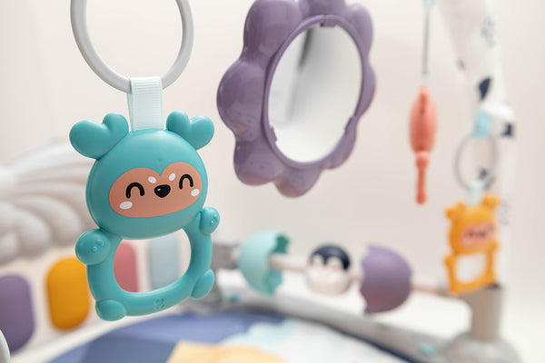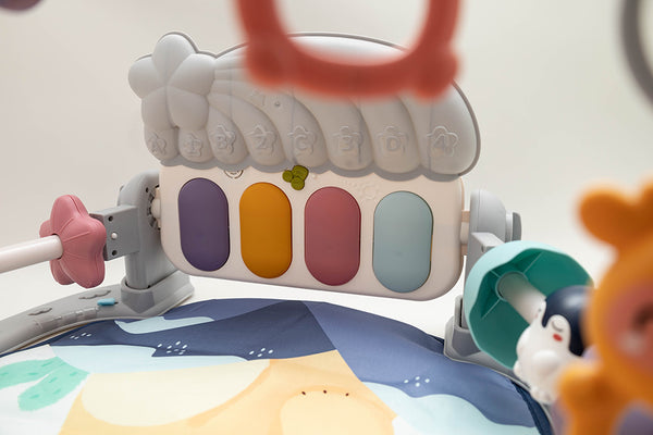Pozwól swojemu dziecku odkrywać świat w pełnym kolorów i dźwięków dzięki macie dla maluchów. Ta mata z pianinkiem na stópki oraz różnorodnymi zabawkami zapewni mnóstwo radości i rozwija zdolności motoryczne.