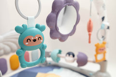 🌟 Interaktywne elementy: 2 ruchome zabawki i lusterko wspomagają bezpieczną zabawę.