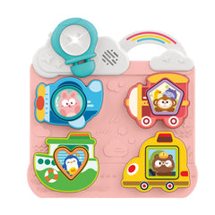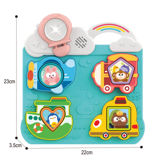 Muzyczny sorter kształtów – pojazdy to edukacyjna zabawka, która łączy naukę z radosną zabawą. Dzięki niej maluch od 18. miesiąca życia uczy się rozpoznawania kształtów i kolorów, ćwiczy koordynację wzrokowo-ruchową oraz rozwija zdolności manualne.