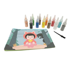 Piaskowa wyklejanka - Baśnie to wyjątkowy zestaw, który przeniesie dziecko w magiczny świat fantazji, kolorów i kreatywności. W komplecie znajduje się aż 16 samoprzylepnych obrazków inspirowanych motywami baśniowymi oraz 12 intensywnych kolorów piasku w praktycznych pojemniczkach-dozownikach. Dzięki dołączonemu pędzelkowi każde dziecko może z łatwością i precyzją stworzyć własne, niepowtarzalne dzieło sztuki.