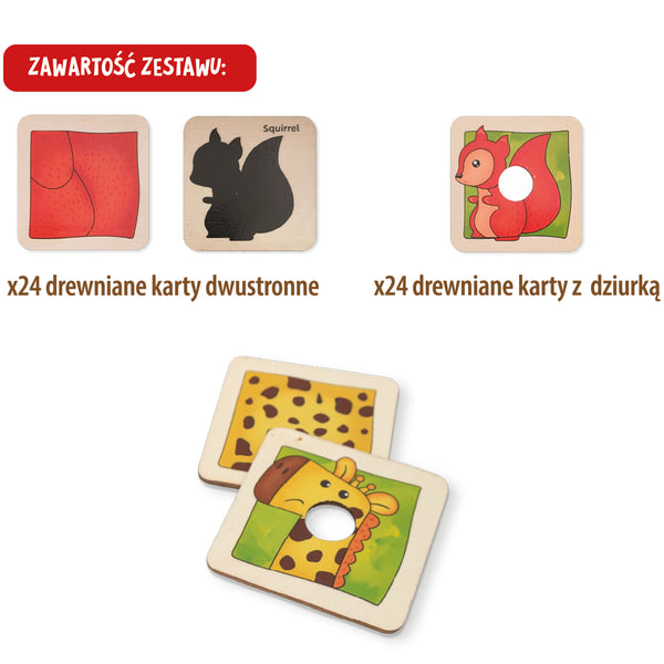 Dziecko dopasowuje cienie do kolorowych obrazków, uzupełnia brakujące elementy lub nawleka kształty na sznurek, ćwicząc precyzję i koordynację ręka–oko. Każda z trzech form zabawy angażuje malucha, uczy koncentracji i cierpliwości, a przy tym daje mnóstwo radości.