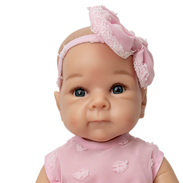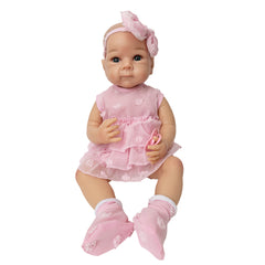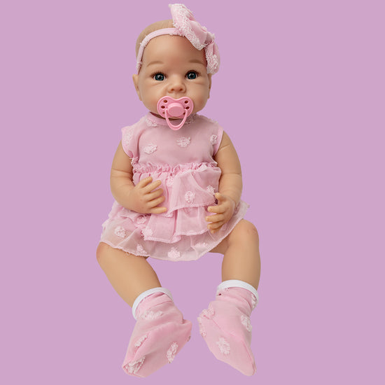 Realistyczna lalka o wysokości 54 cm wykonana została z niezwykle przyjemnego, miękkiego tworzywa przypominającego gumę, które wiernie imituje skórę dziecka. Jej wyjątkowa mimika – z delikatnie przygryzioną dolną wargą – nadaje jej niepowtarzalny, rozczulający wyraz twarzy, jak u prawdziwego niemowlęcia.