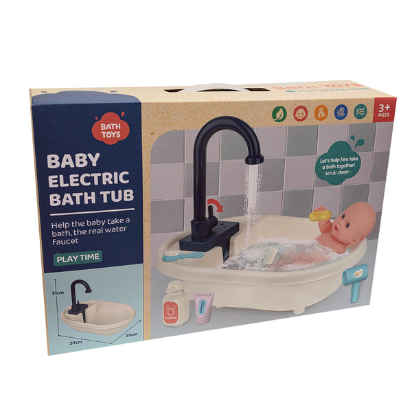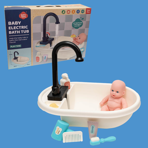 Po napełnieniu wanny wodą i włożeniu baterii, z kranu zaczyna lecieć prawdziwy strumień wody, co dodaje zabawie autentyczności.