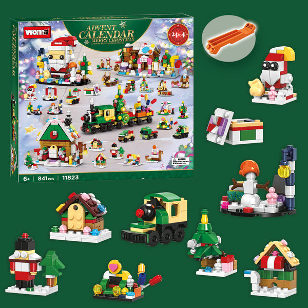 Kalendarz oferuje 24 mini-konstrukcji, które rozwijają wyobraźnię i wprowadzają w świąteczny nastrój. Każde 6 z nich łączy się w jedną większą konstrukcję, dzięki czemu w grudniu powstają aż cztery duże świąteczne dzieła: Święty Mikołaj, pociąg bożonarodzeniowy, zimowy domek i nastrojowa świąteczna uliczka.