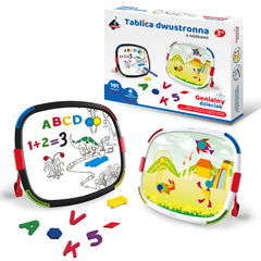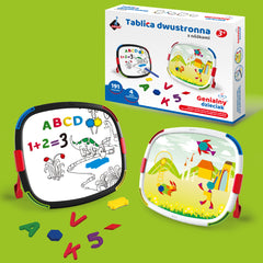 Dwustronna tablica magnetyczna to zestaw, który łączy naukę z nieograniczoną kreatywnością! Dzięki aż 191 elementom dziecko może jednocześnie bawić się, uczyć i rozwijać swoje zdolności manualne oraz poznawcze.