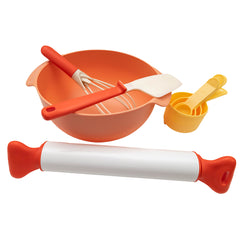 Zestaw do pieczenia z wałkiem to idealny komplet akcesoriów kuchennych dla dzieci, które uwielbiają pomagać w kuchni i odkrywać tajniki pieczenia. W zestawie znajduje się miska z uchwytami, wałek do ciasta, trzepaczka, łopatka do mieszania oraz 4 miarki o różnej pojemności. Dzięki temu dziecko może spróbować swoich sił w odmierzaniu, mieszaniu i wałkowaniu – dokładnie tak jak w prawdziwej kuchni!