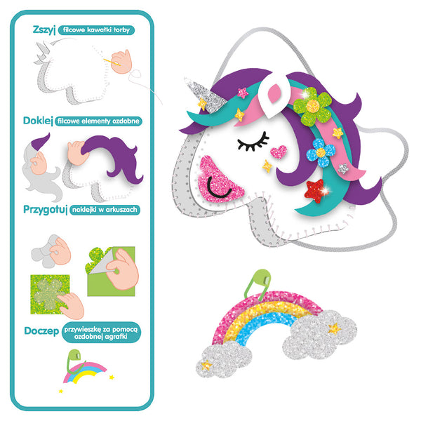 Zestaw kreatywny Filcowa wyszywanka – torebka jednorożec